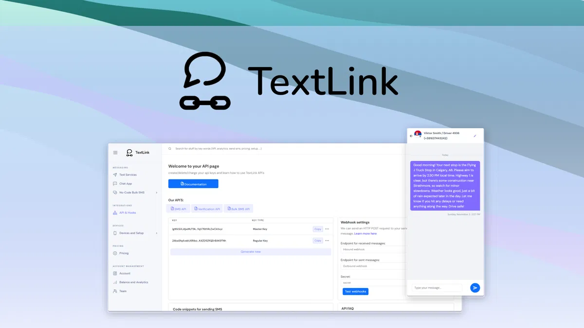 Rest API, SMS, Webhooks